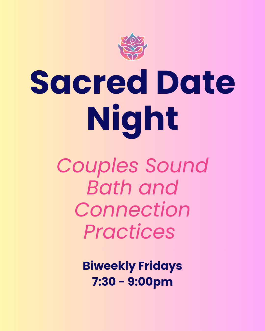 An intentional pause from the pace of everyday life. Sacred Date Night is a bi-weekly offering for couples who want to deepen connection through presence, guided practices, and shared sound.